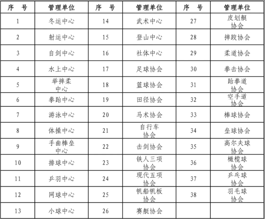 (已建立反兴奋剂部门的国家运动项目管理单位汇总表)