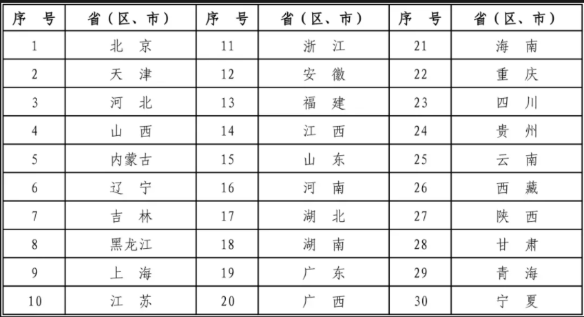 (30个已建立省级反兴奋剂机构的省(区、市)汇总表)