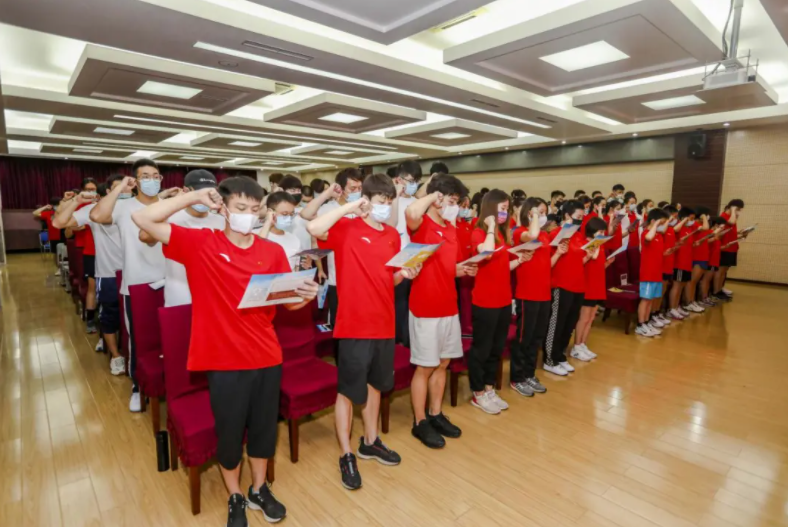 北京市木樨园体校副校长江永华带领全体参训人员面对国旗进行了庄严的反兴奋剂宣誓。