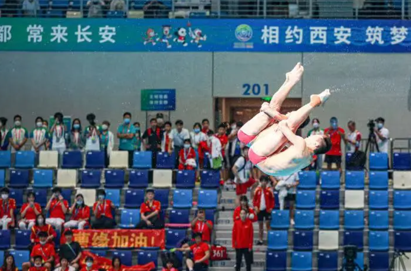 9月10日,在西安奥体中心游泳跳水馆举行的第十四届全国运动会(以下简称十四运会)跳水比赛中,北京代表队的曹缘以联合组队的方式参加男子双人十米跳台项目,他与队友陈艾森发挥稳定,毫无悬念地获得金牌。至此,北京跳水队已在全运会跳水项目上,斩获三金一铜,表现抢眼。