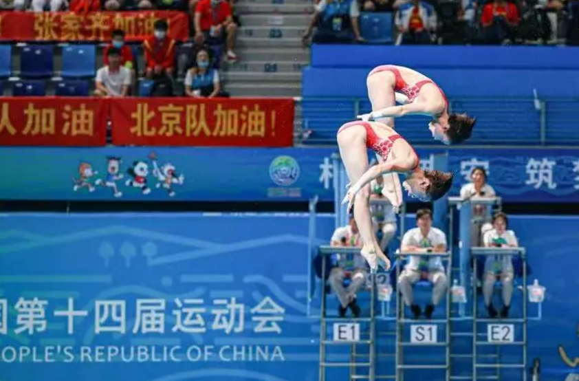 9月9日,在西安奥体中心游泳跳水馆举行的中华人民共和国第十四届运动会(以下简称十四运)跳水女子双人十米跳台项目中,北京代表队的张家齐以联合组队的方式参加女子双人十米跳台项目,获得金牌,成功卫冕全运会女子双人十米跳台冠军。这也是继9月8日北京跳水队获得一金一铜后,夺得的又一枚金牌。至此,北京跳水代表队已在全运会跳水项目上,斩获两金一铜,战绩斐然。