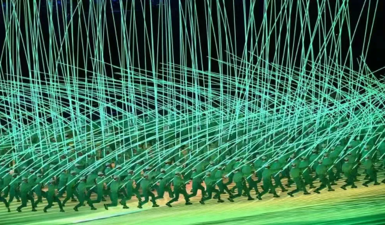 来自世界各地的76名年轻人走进体育场,并肩而行。所过之处,一幅展现世界各国人民休戚与共、共克疫情、为梦想激情拼搏的照片长卷徐徐展开,如同一条影像的长河静静流淌。长河两侧,寓意团结和吉祥的中国结图案,渐渐幻化为“一起向未来”的中英文字样,表达着携手同行、共创未来的美好期许。