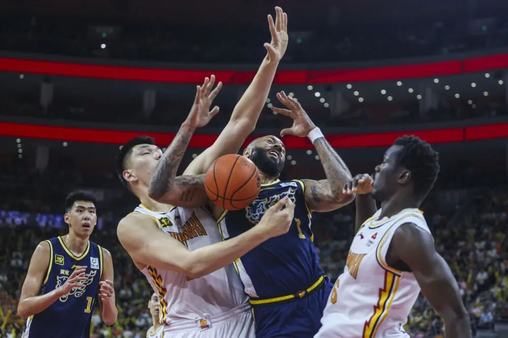 4月19日,广东东阳光队球员吉伦沃特(右二)在CBA比赛中。新华社发(郑家雄摄)
