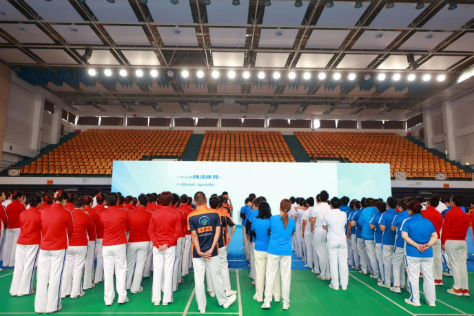 最后,全体在场人员共同郑重宣誓:“我承诺:以纯洁之心参与体育运动,远离兴奋剂,拒绝任何形式的违规行为!让纯洁体育照亮人生!”