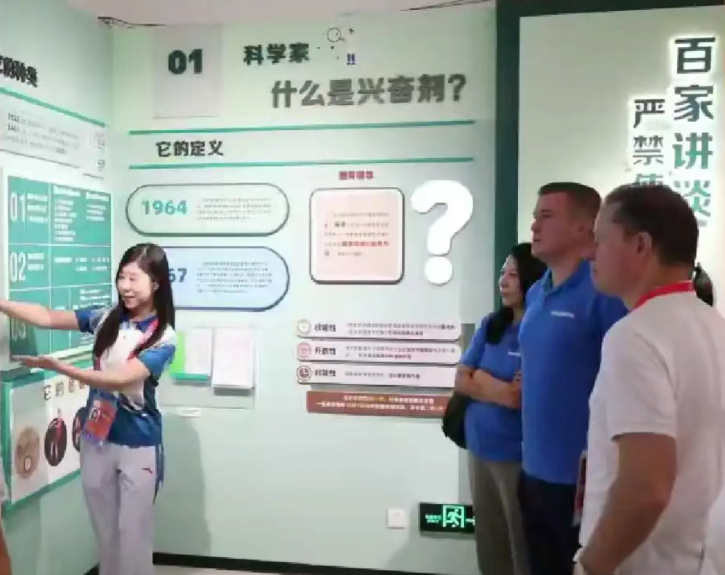 班卡一行在广东省反兴奋剂教育科普基地参观。班卡认为,教育永远是反兴奋剂工作的基石,建立反兴奋剂教育系统是WADA过去六年最重要的成就之一。
