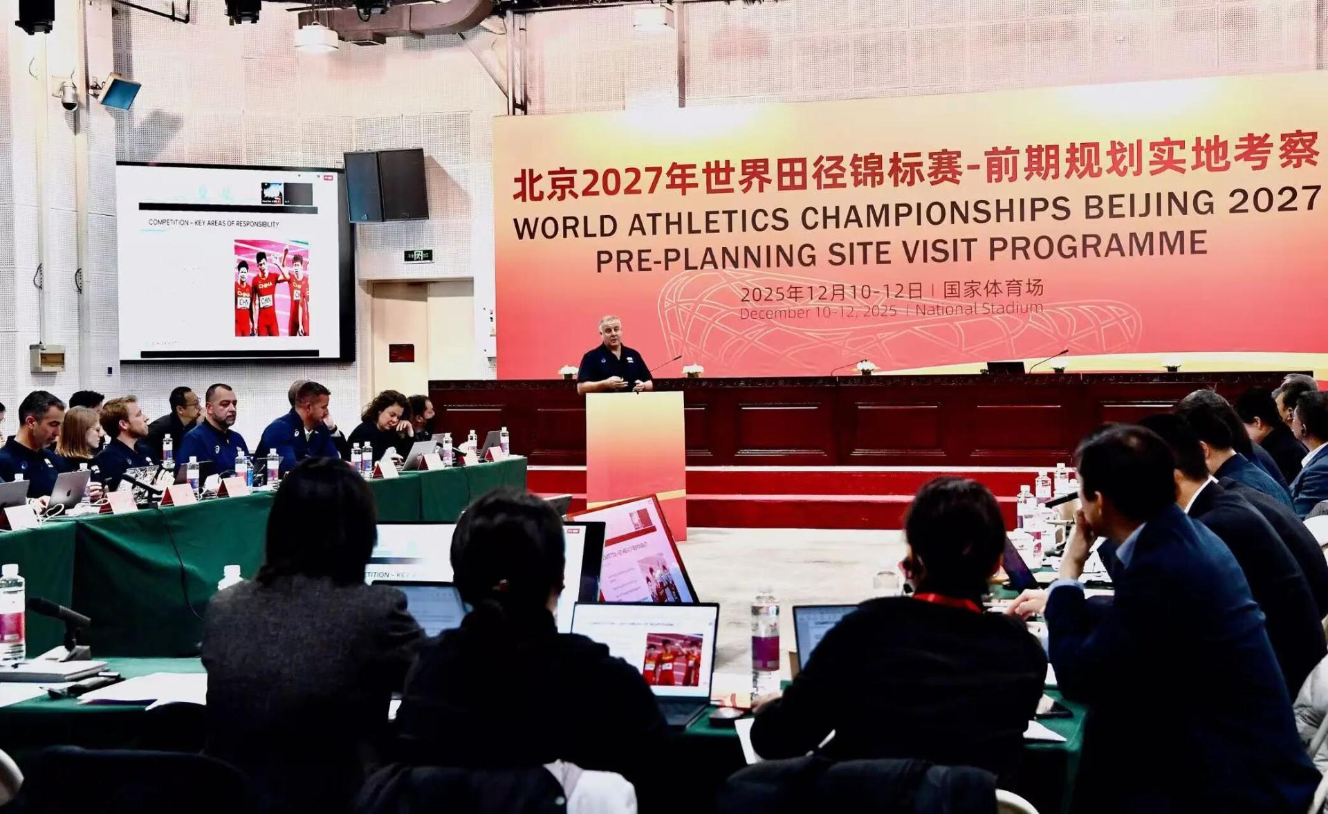 世界田联考察团一行19人于12月9日抵京,开启为期3天的全业务领域、全流程实地考察。这是自赛事进入“北京周期”以来,世界田联首次考察工作,旨在全面审议北京2027年世界田径锦标赛组委会的各项筹备进展。此次考察标志着该项国际顶级赛事的筹备工作正式进入与国际标准全面对标的关键阶段。