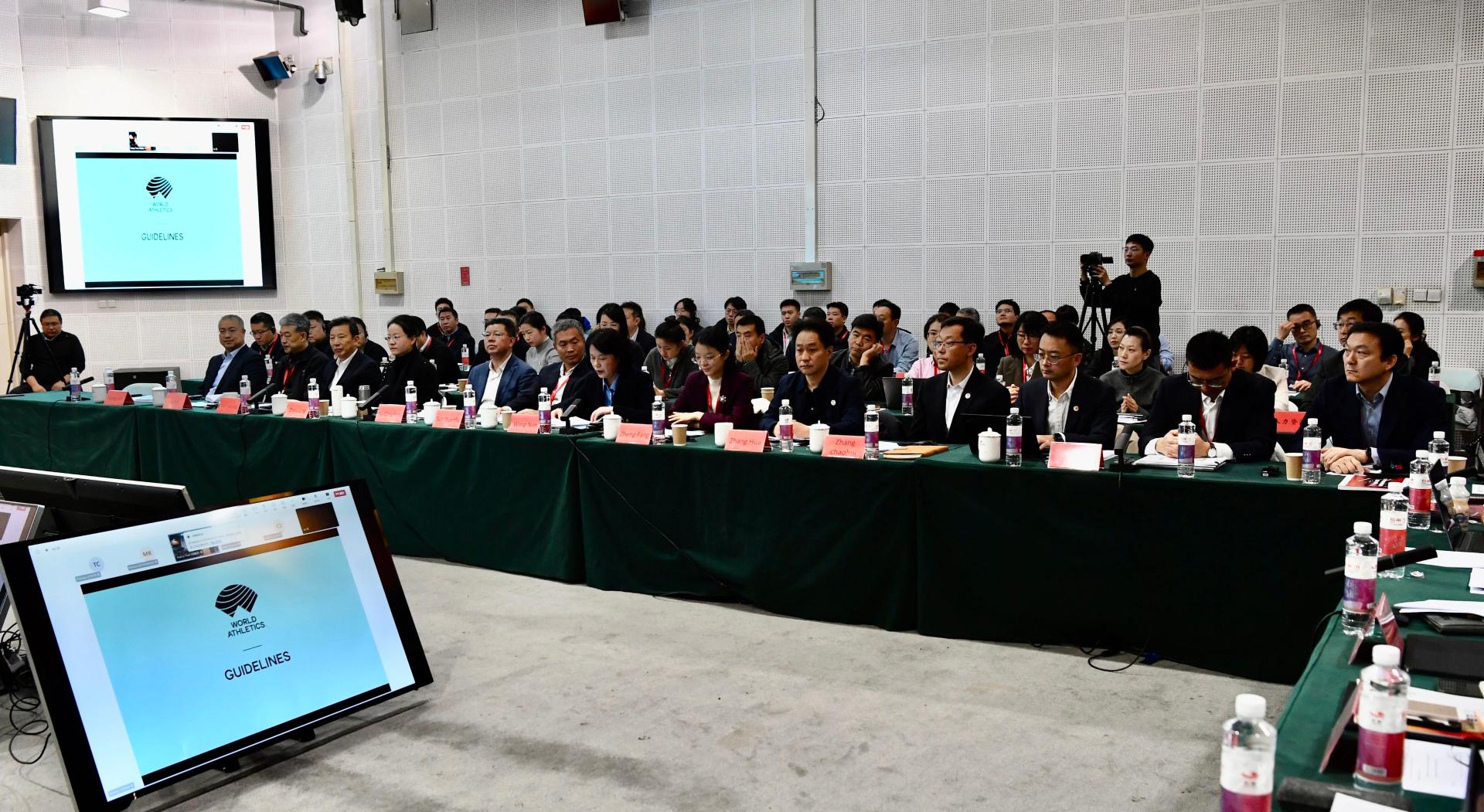 随后,世界田联赛事总监马顿·盖莱致辞。他表示,回顾北京2015年世界田径锦标赛的举办经历至今令人难忘,观众的热情参与和中国体育的蓬勃发展令人鼓舞。他强调,在接下来的21个月筹备期中,双方应保持密切合作,系统推进各项筹备工作。世界田联考察团成员结合国际办赛标准,分别围绕竞赛组织、场地设施、技术服务、媒体运行等业务领域进行了详细说明,并提出了具有针对性的专业意见。